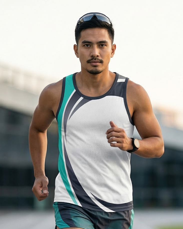 Achieve perfect performance balance with the Nexus Flow Singlet by SNF Sports Connect. Featuring a clean white base paired with fluid, intersecting curves of deep charcoal and teal, this design captures the essence of rhythmic, high-speed movement. It is the perfect choice for organizations that want a crisp, modern team aesthetic that feels light, fast, and remarkably sharp. With its ergonomic fit and refined color palette, the Nexus Flow is the intersection of high-fashion athletic design and peak functional performance.